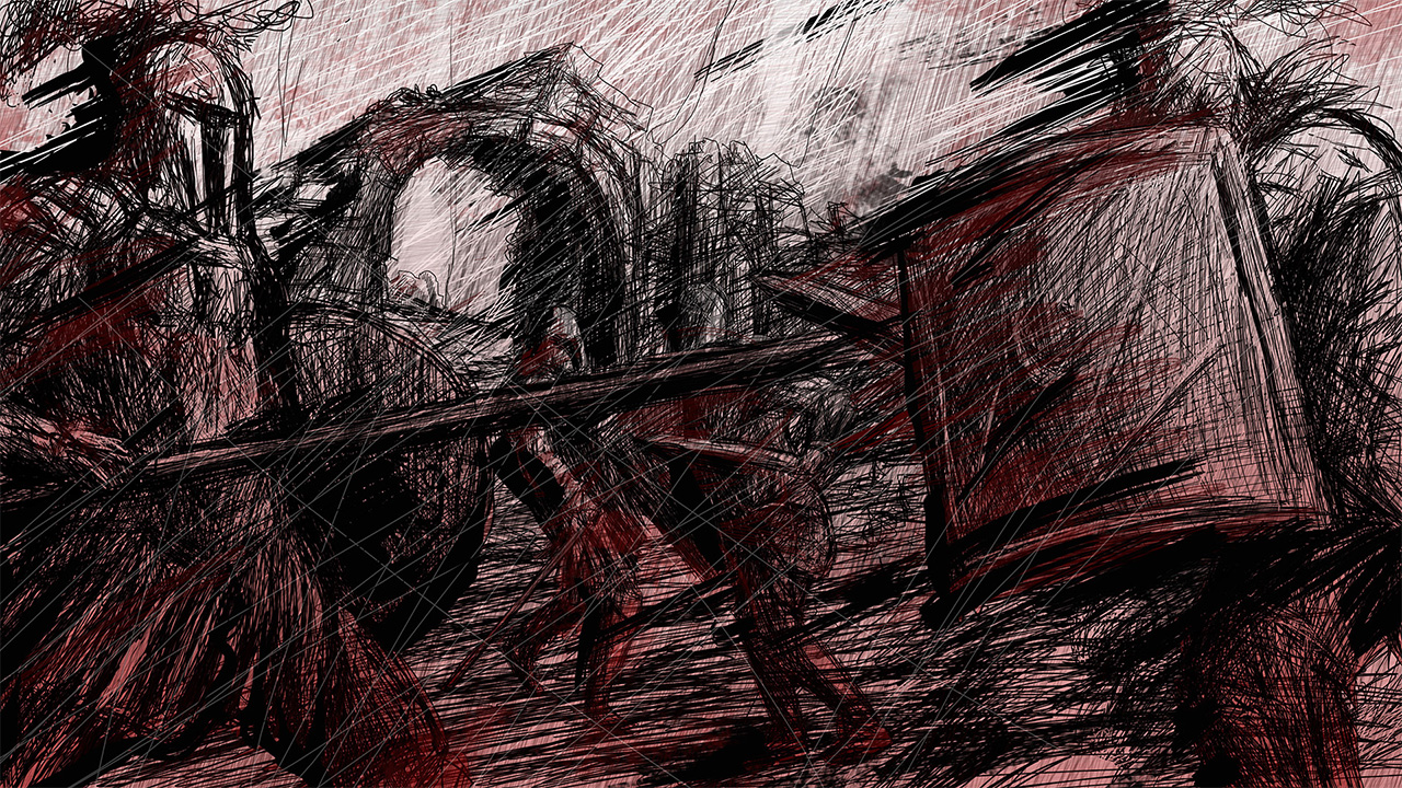 und Künstlern rund um das Nimeni-Kolleg erstmalig gelungen ist, ein Buch begehbar zu machen: die berühmte Ilias. Treten Sie ein und machen Sie es sich bequem – aber Vorsicht, der Zutritt erfolgt auf eigene Gefahr! Für eine Rückkehr in die sogenannte Wirklichkeit können wir leider nicht garantieren; wohl aber dafür, dass Homer im Grab Pirouetten drehen wird.
